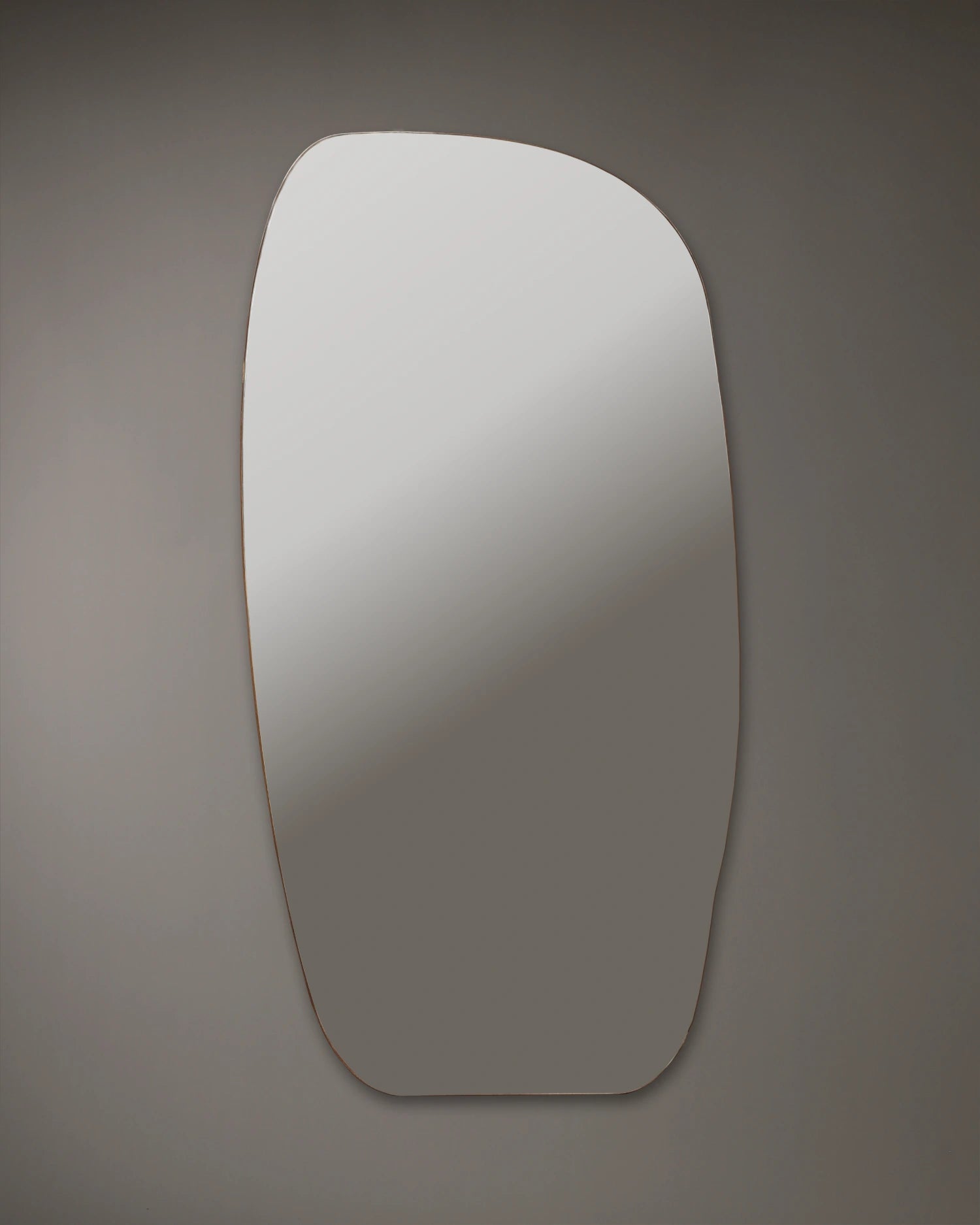 Its large reflective plane adds presence to a room, while the curved frame introduces a strong visual boundary that defines the piece. The mirror stands as a straightforward, well-resolved object: practical in purpose, confident in geometry, and built with attention to proportion.